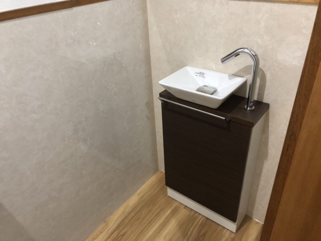 この度リフォームさせていただき、トイレだけでなくタイルからクロス・フロアタイル、そして扉も変えたので、がらっと雰囲気が変わりました。
