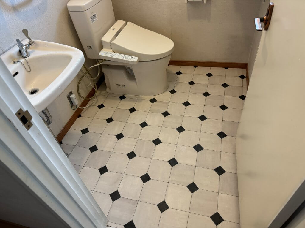 既存の設備はまだ問題なく使用できるようで、クッションフロアのみ貼替えです。