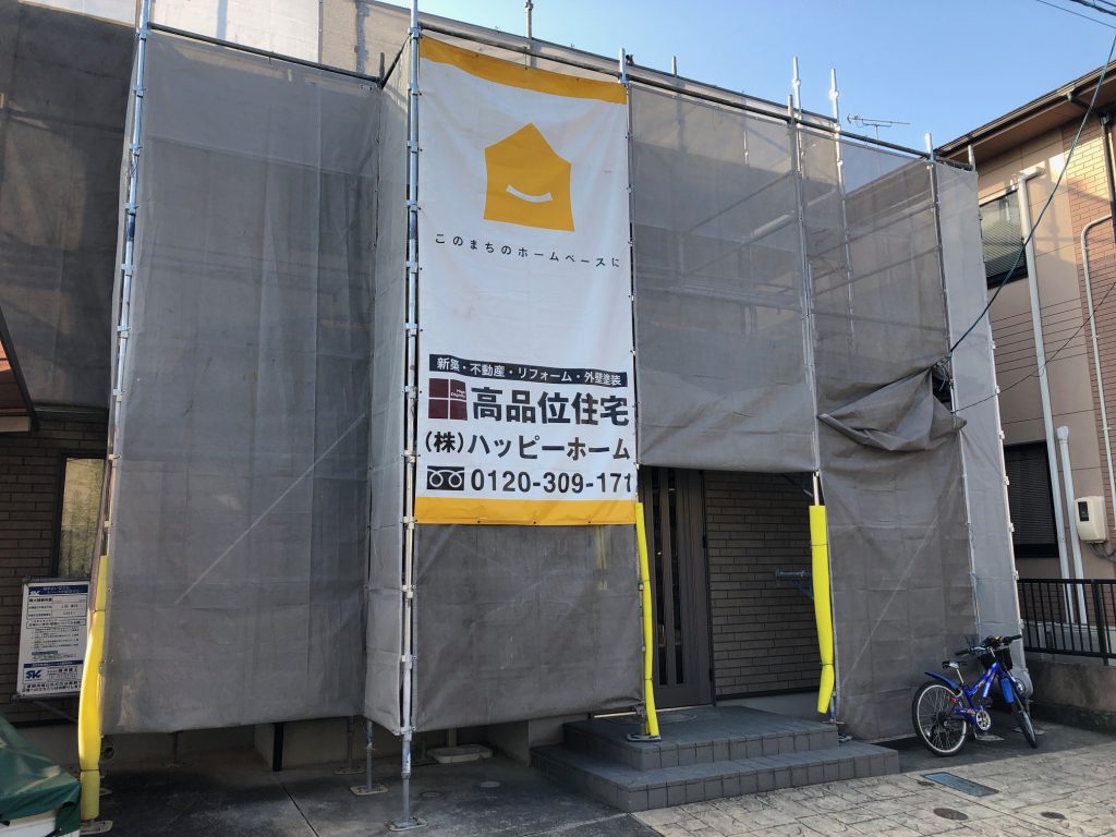 本日より、屋根、外壁塗装工事スタートです。 仮設足場組からスタートです。