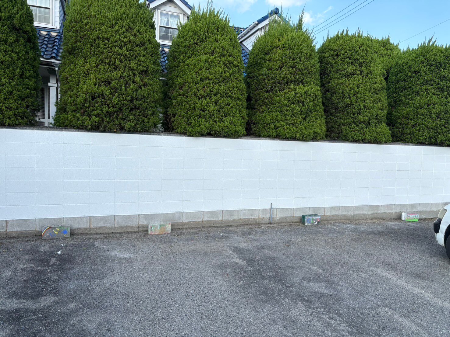 | 工事内容 | 外構工事 ■ブロック塀塗装 ■駐車場フェンス設置 ■白線引き・車止め |