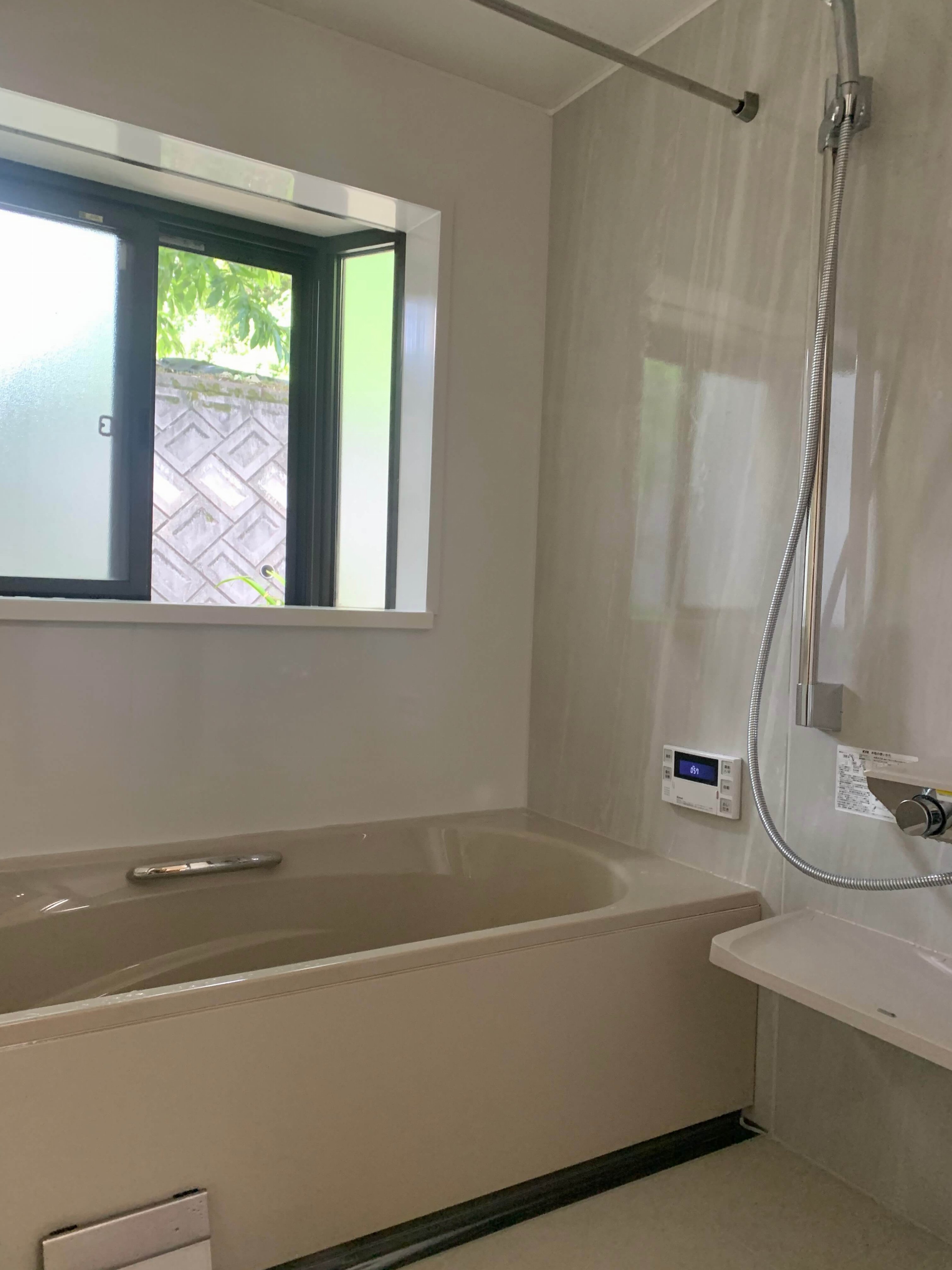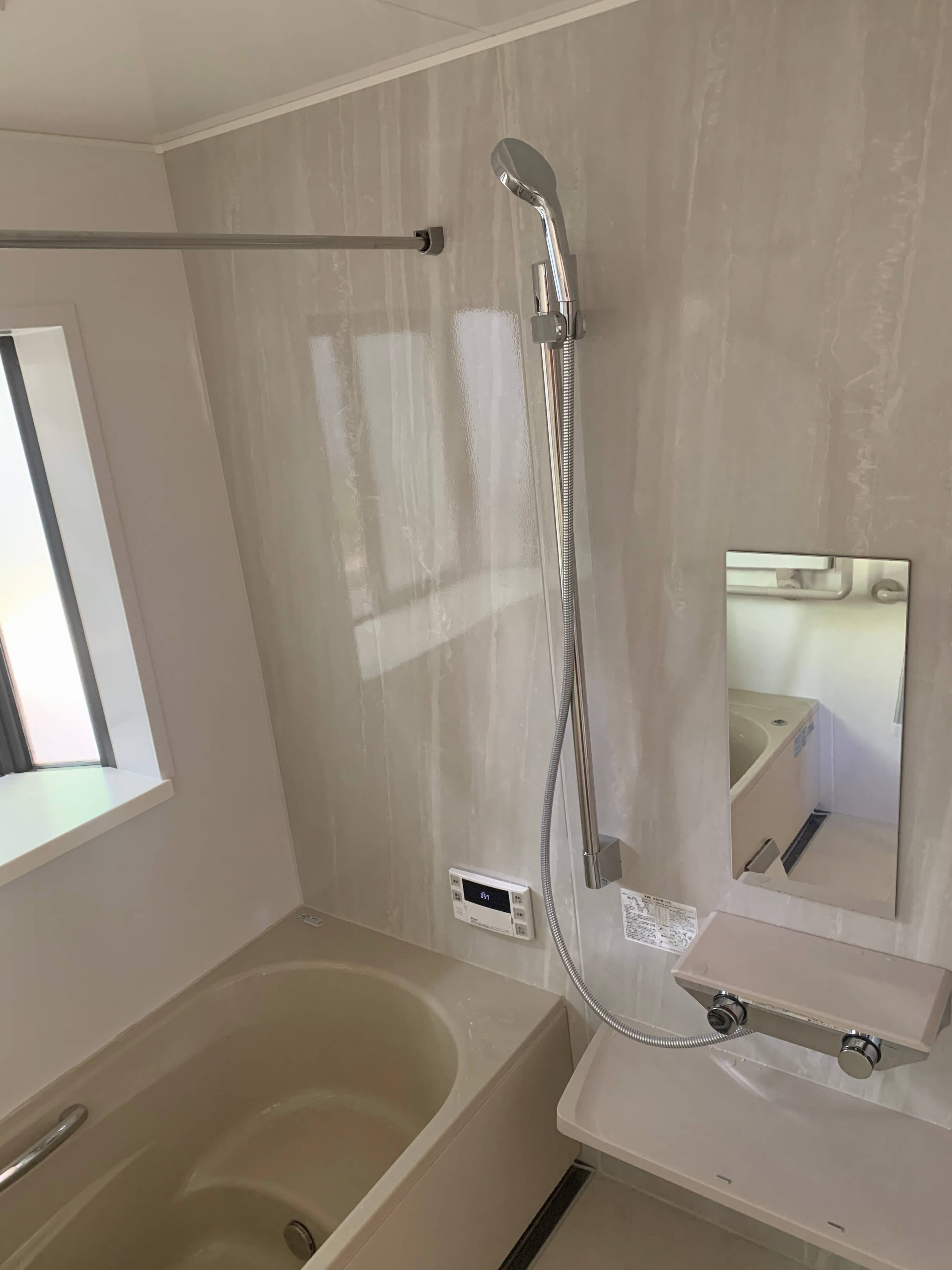 浴槽まで続いていたカウンター部分をなくし、少し広くすることができました。保温性能も上がり、これからの寒い時期に向けて快適に過ごせるようになりましたね。