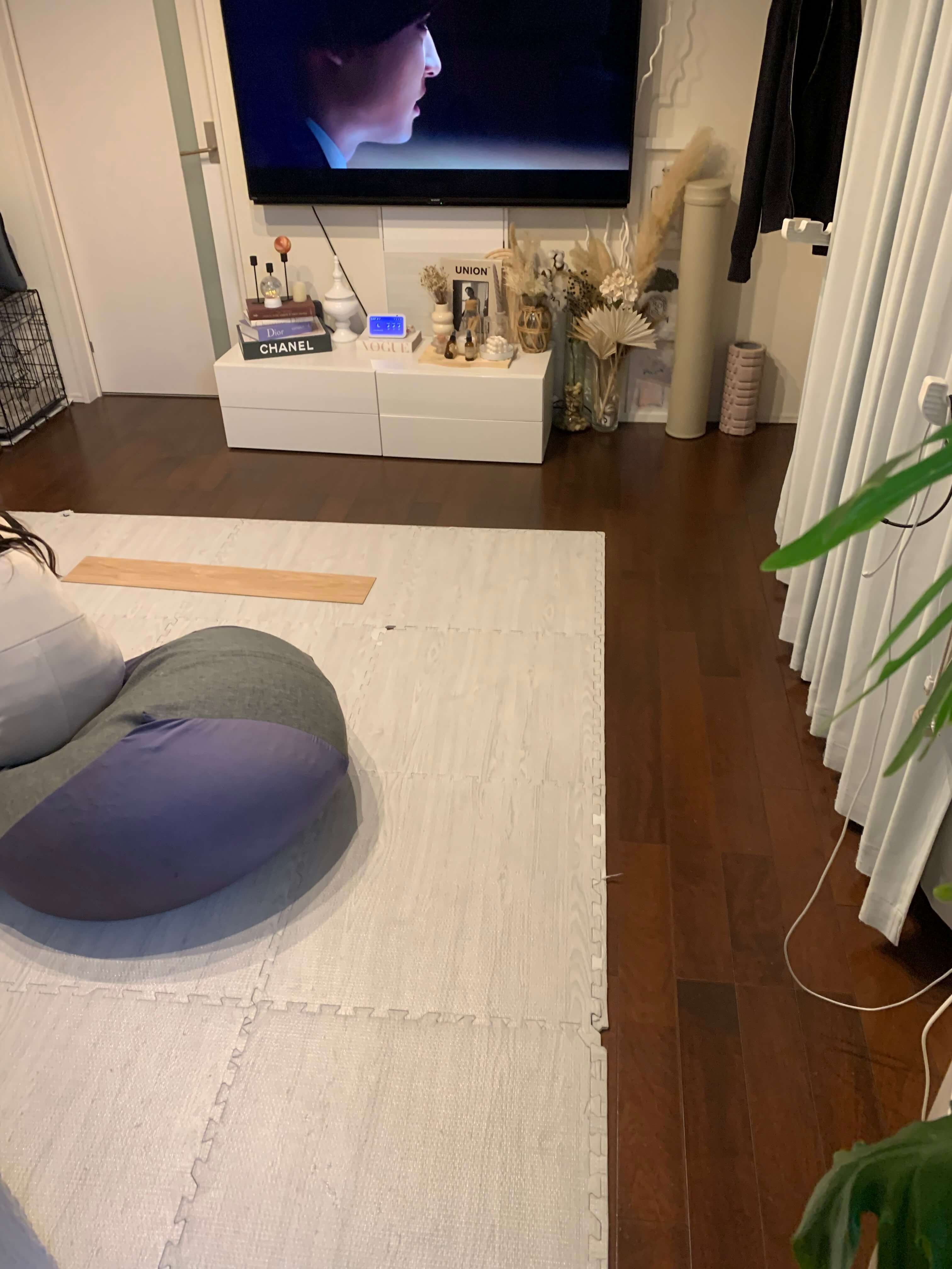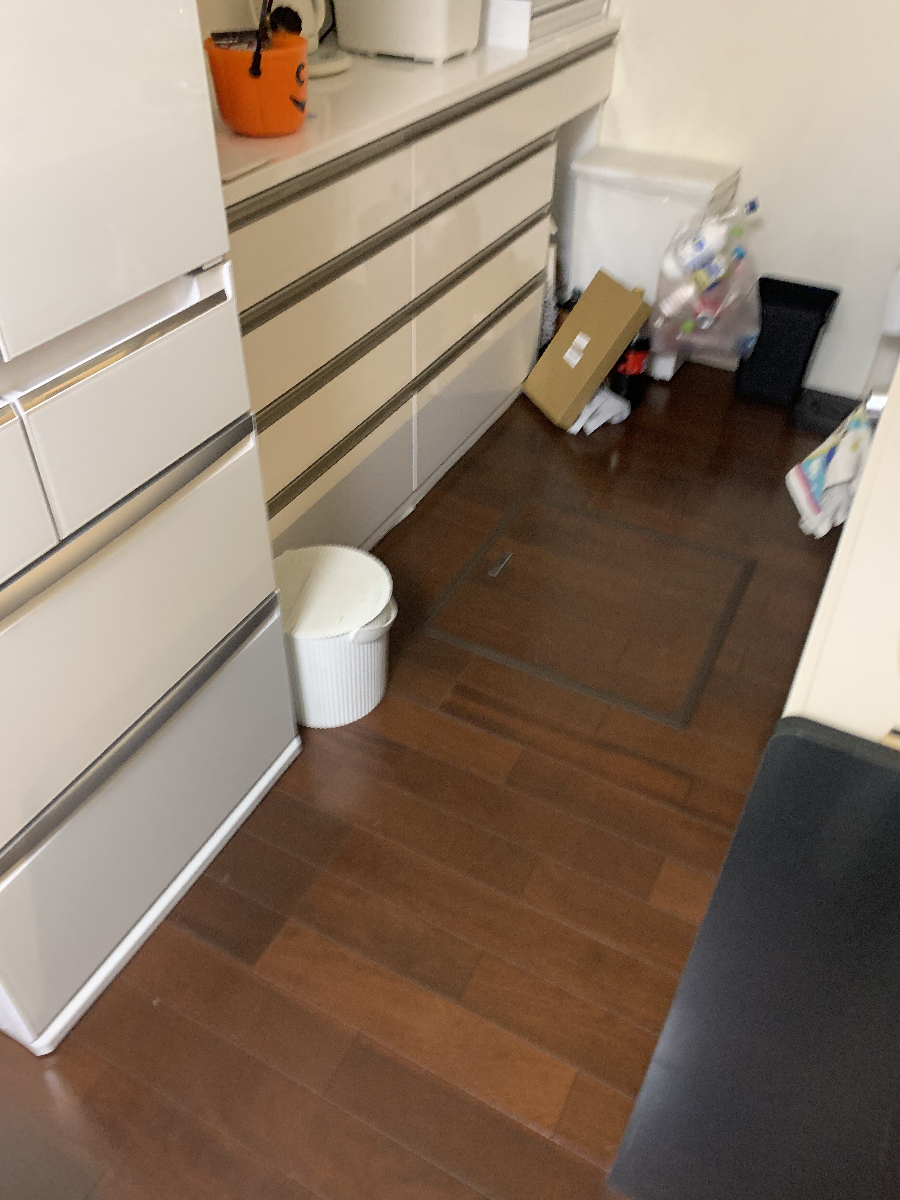 LDKの床を明るくしたいとご相談いただきました。木目の濃い茶色のフローリングで暗く感じてしまうことや、以前わんちゃんを飼われていたこと、お子様が小さい頃からのキズや汚れが目立ってきた点を気にされていました。