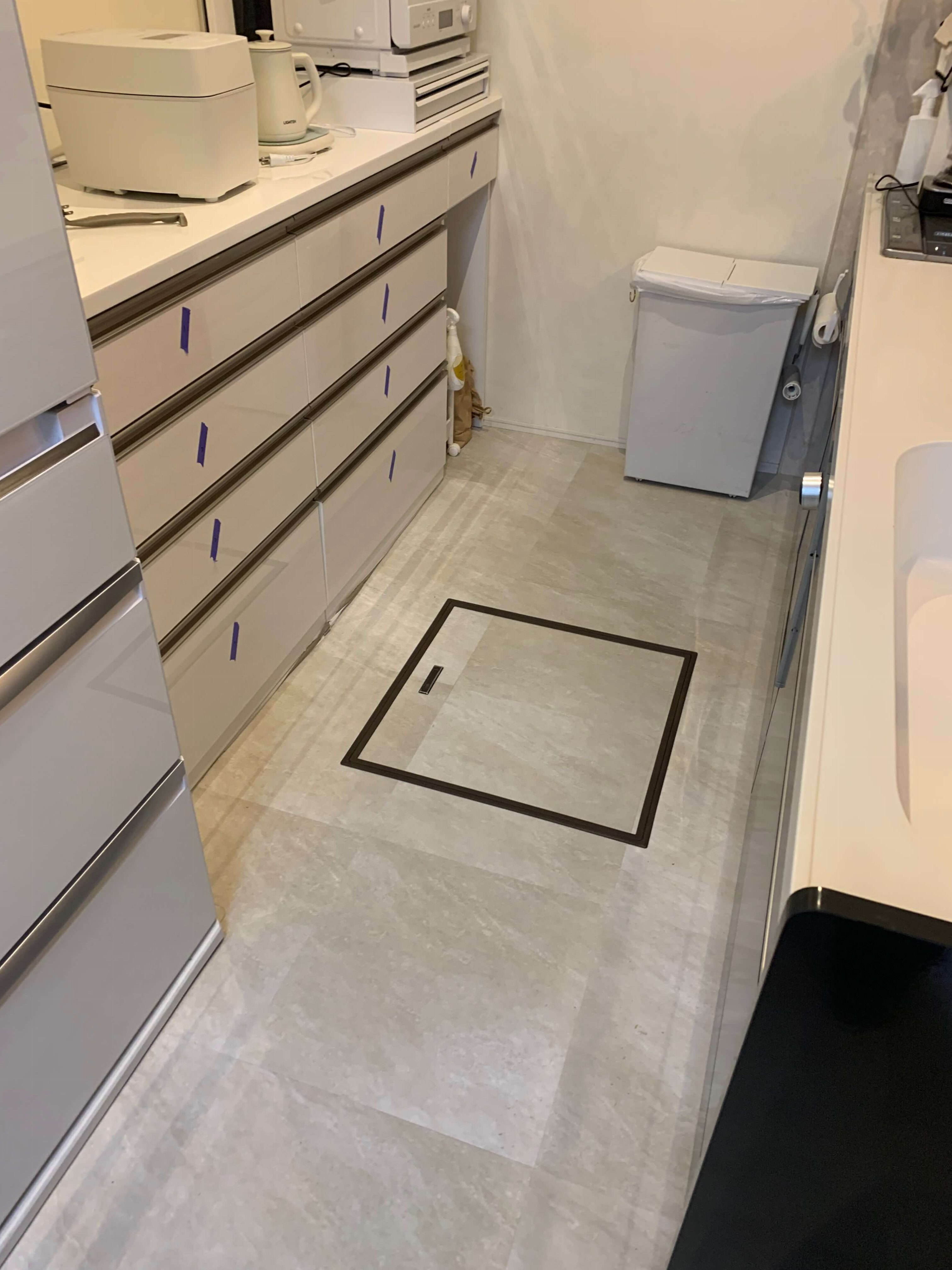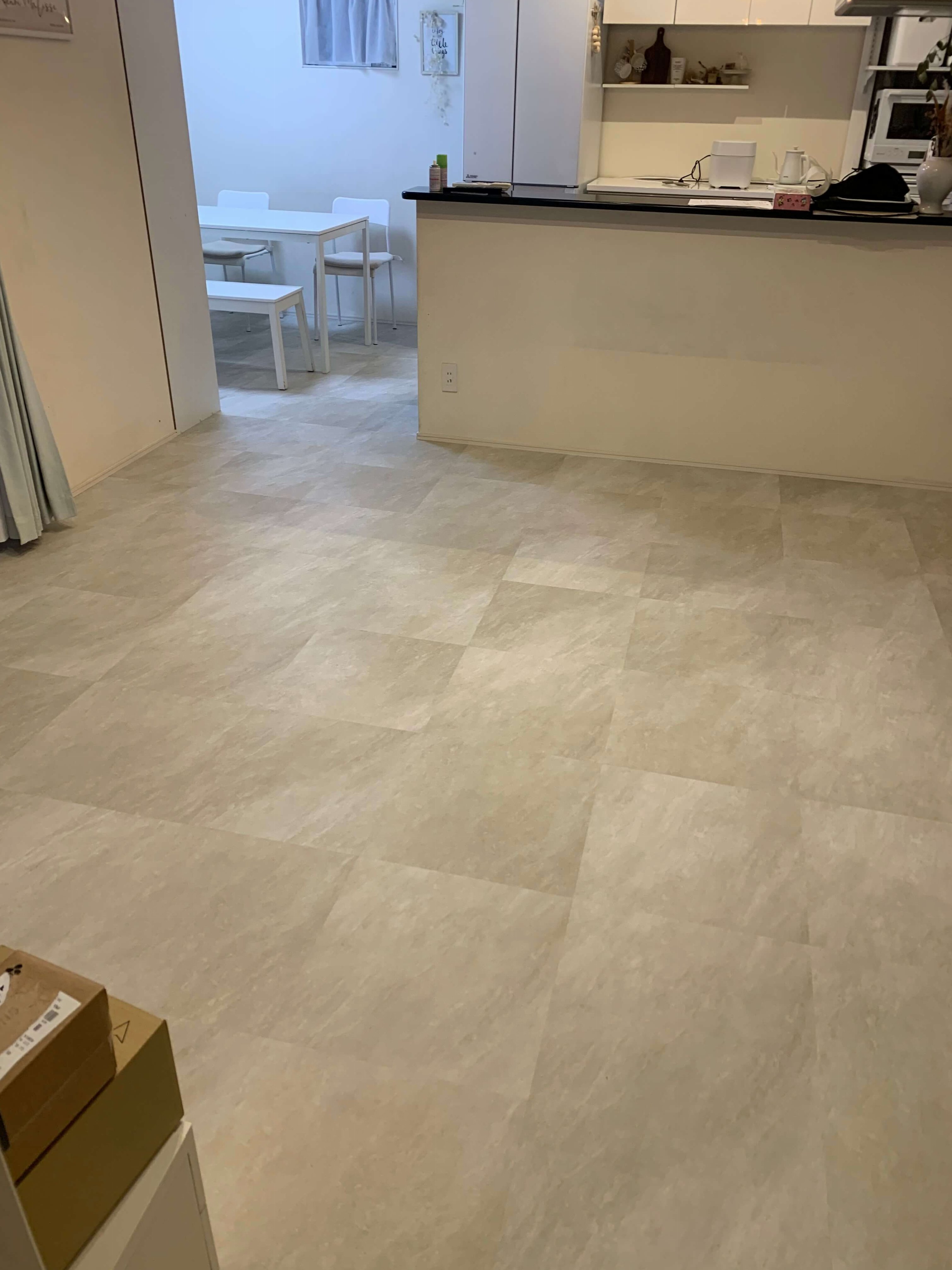 キズが目立ちにくく、明るくおしゃれな空間を演出できるフロアタイルを採用。当初は、「真っ白にしたい」とご希望でしたが、少し色味を加えた方がアクセントになり、より空間に馴染むことをご提案し、その仕様で張り替えました。