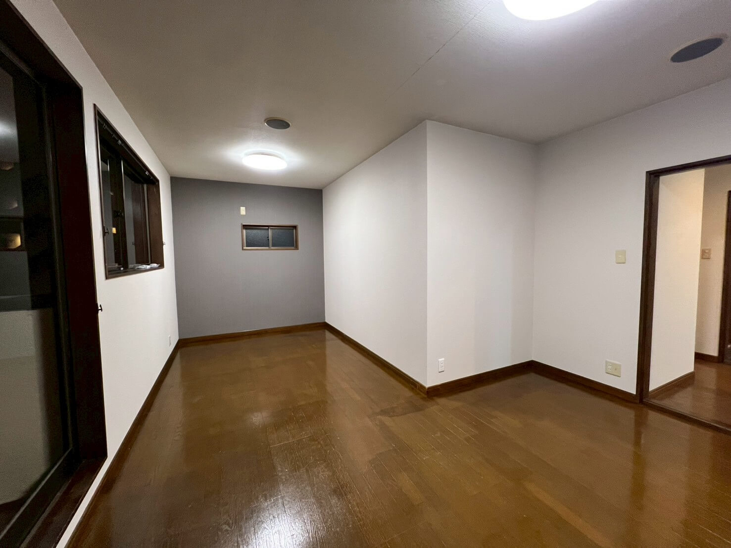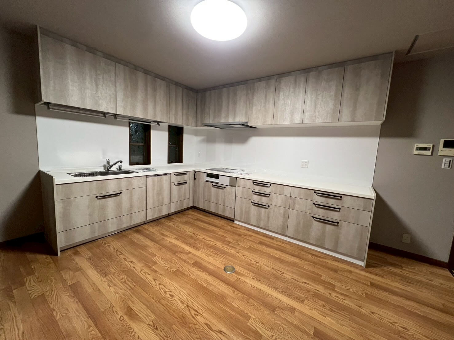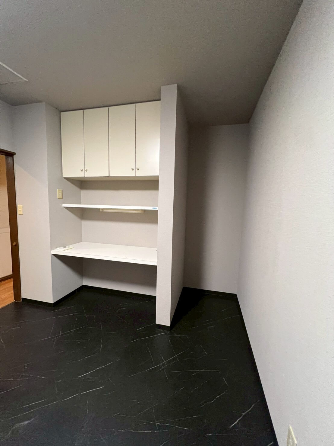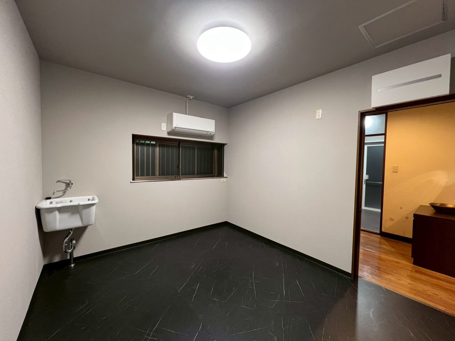 クロスや床・天井の張替えに加え、水廻り設備をすべて一新し、新拠点として事務所利用と生活の両立ができる空間に整えました。キッチンは位置を変更して広いLDKを確保し、元のキッチンスペースはペット専用のお部屋へ。スロップシンクを設置し、お手入れもしやすくなっています。