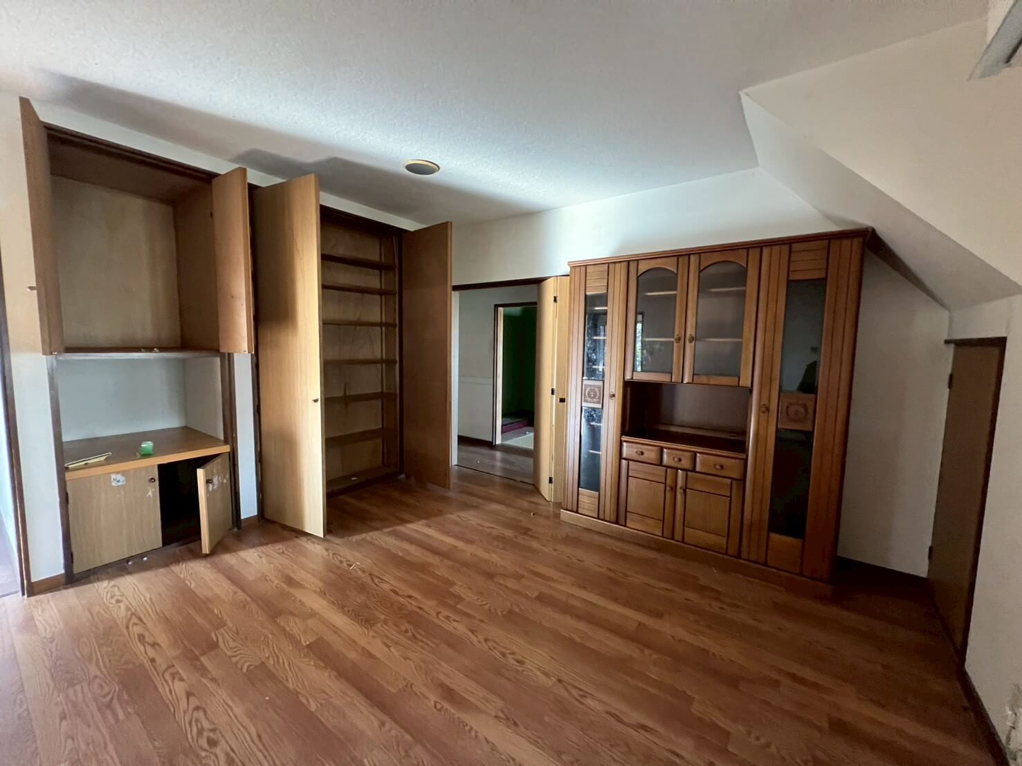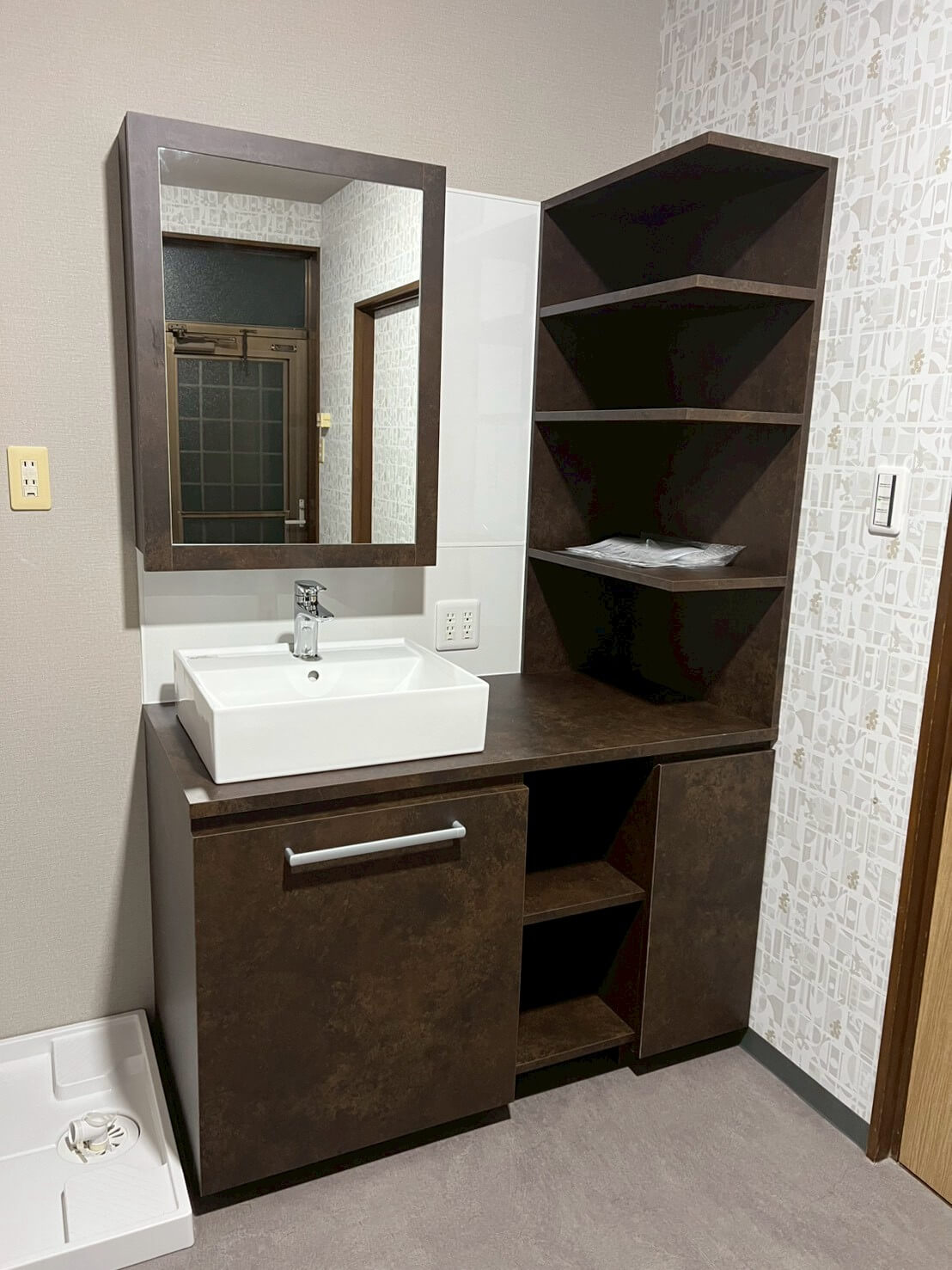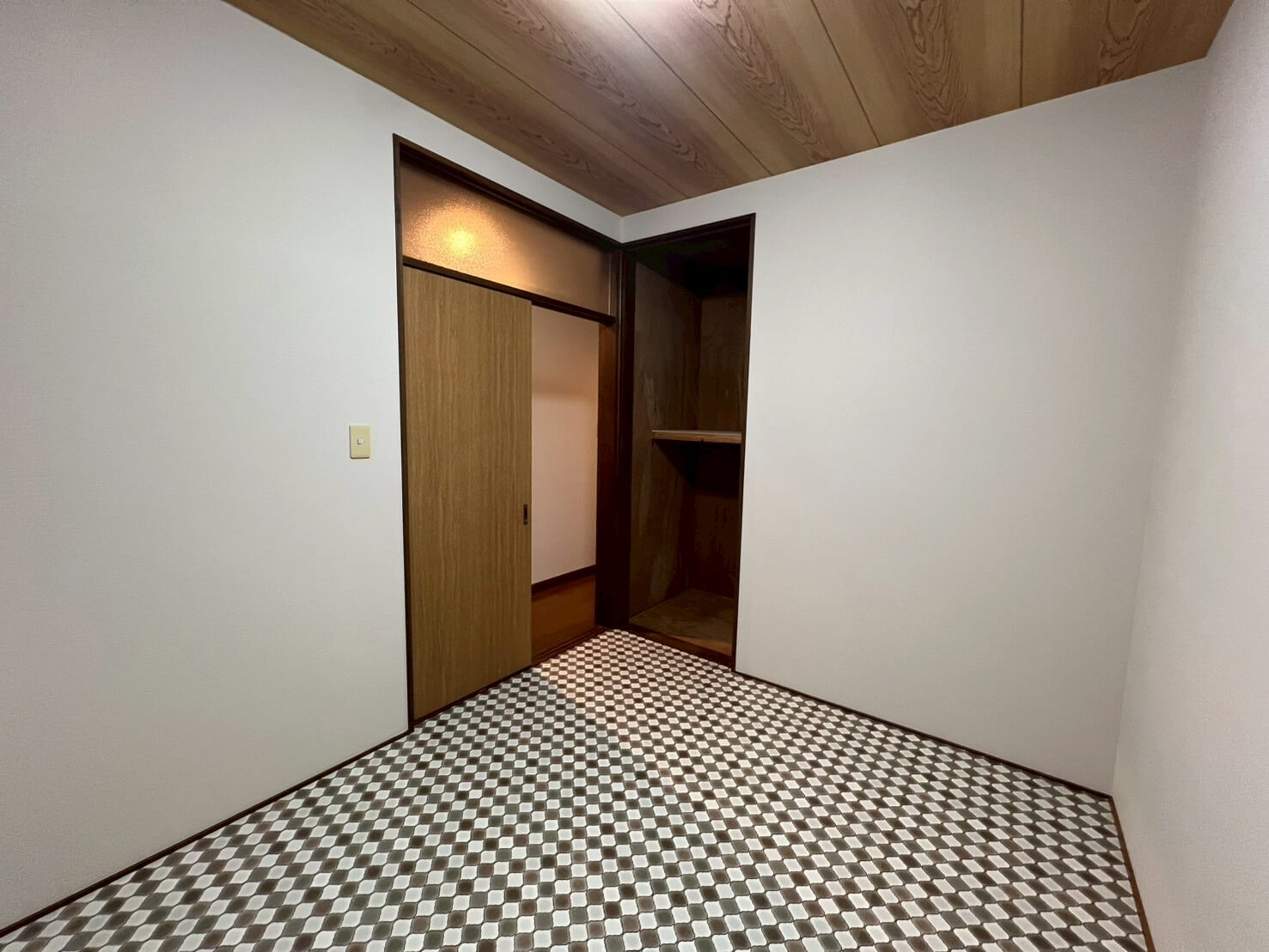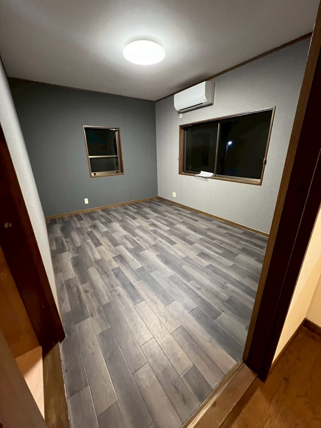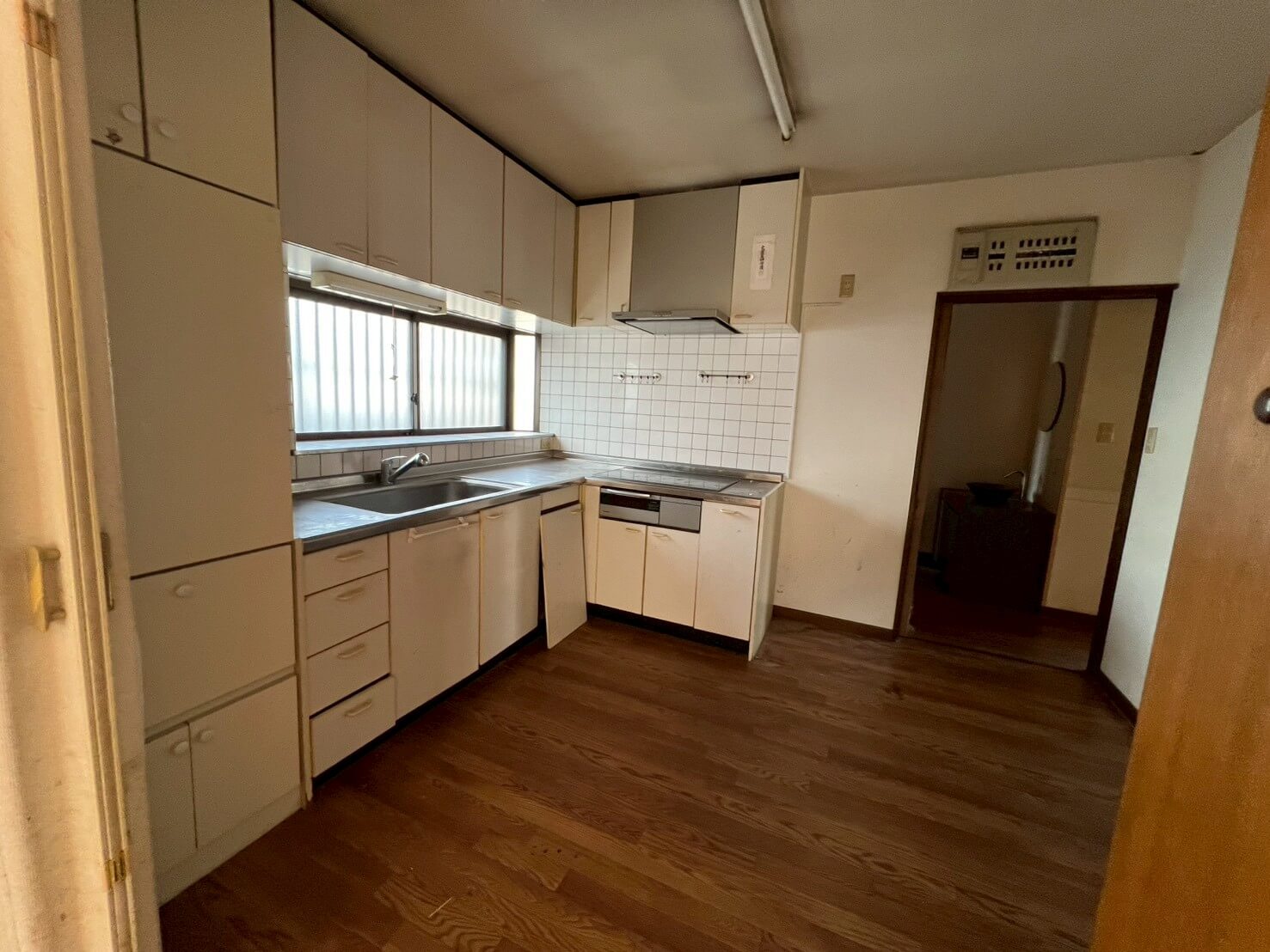 クロスや床・天井の張替えに加え、水廻り設備をすべて一新し、新拠点として事務所利用と生活の両立ができる空間に整えました。キッチンは位置を変更して広いLDKを確保し、元のキッチンスペースはペット専用のお部屋へ。スロップシンクを設置し、お手入れもしやすくなっています。