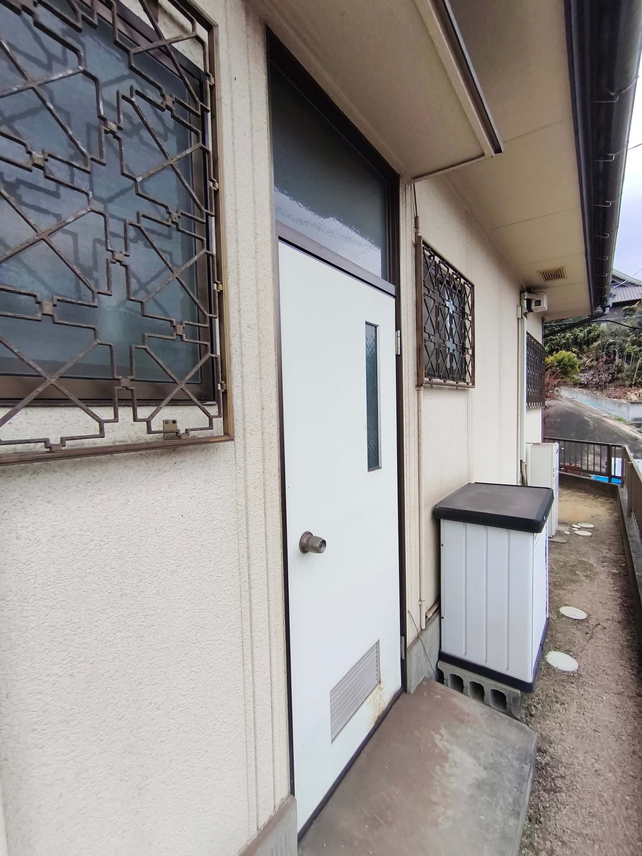 玄関ドア・勝手口ドアは、どちらもリクシルのリシェントを採用。壁を壊さずに施工できる「カバー工法」にて取り替えを行いました。